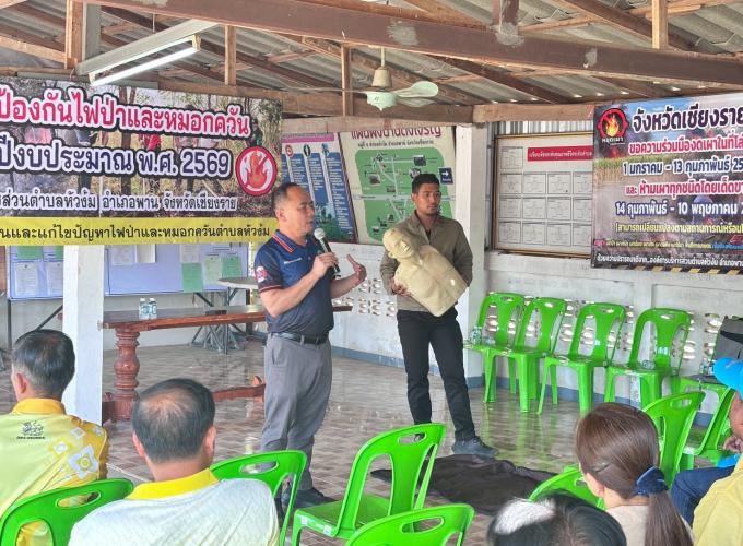 วันศุกร์ที่ 13 กุมภาพันธ์ 2569 องค์การบริหารส่วนตำบลหัวง้ม ได้ดำเนินการจัดฝึกอบรมโครงการป้องกันไฟป่าและหมอกควัน ประจำปีงบประมาณ พ.ศ.2569 ณ บ้านดงเจริญ หมู่ที่ 9 ตำบลหัวง้ม อำเภอพาน จังหวัดเชียงราย