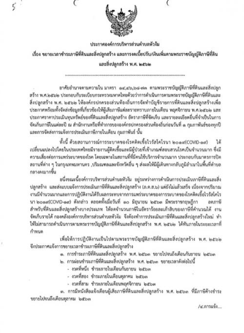 ประกาศองค์การบริหารส่วนตำบลหัวง้ม เรื่อง ขยายเวลาชำระภาษีที่ดินและสิ่งปลูกสร้าง และการงดเบี้ยปรับ/เงินเพิ่มตามพระราชบัญญัติภาษีที่ดินและสิ่งปลูกสร้าง พ.ศ. 2562
