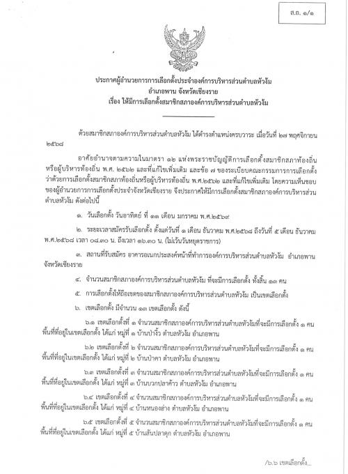 ประกาศผู้อำนวยการการเลือกตั้งประจำองค์การบริหารส่วนตำบลหัวง้ม เรื่อง ให้มีการเลือกตั้งสมาชิกสภาองค์การบริหารส่วนตำบลหัวง้ม