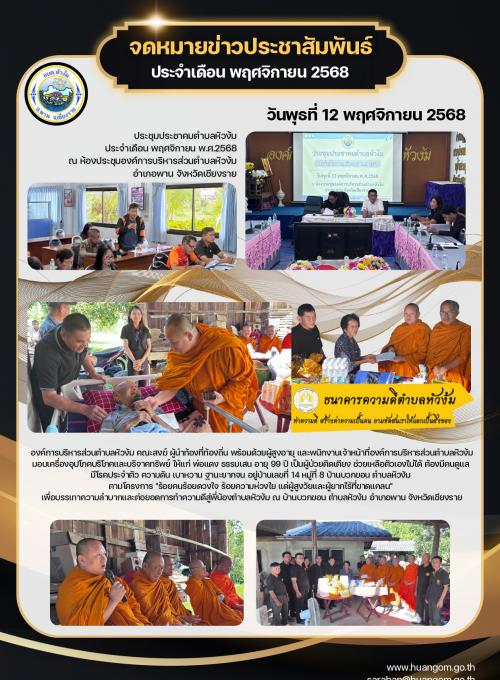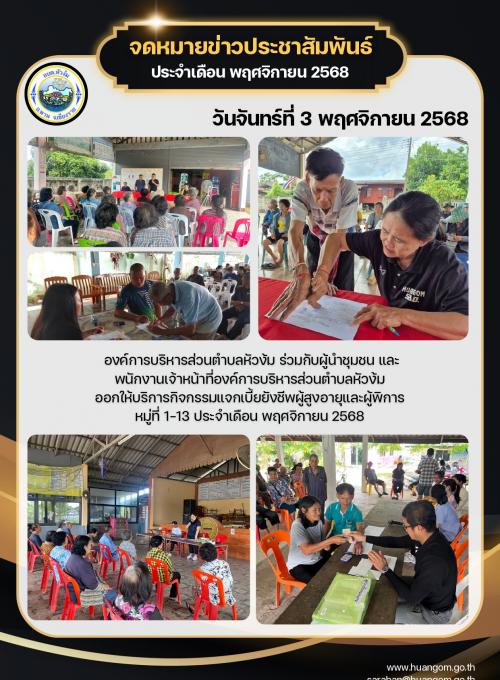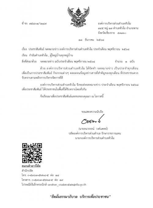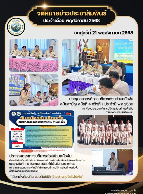 ประชาสัมพันธ์ จดหมายข่าว องค์การบริหารส่วนตำบลหัวง้ม ประจำเดือน พฤศจิกายน 2568