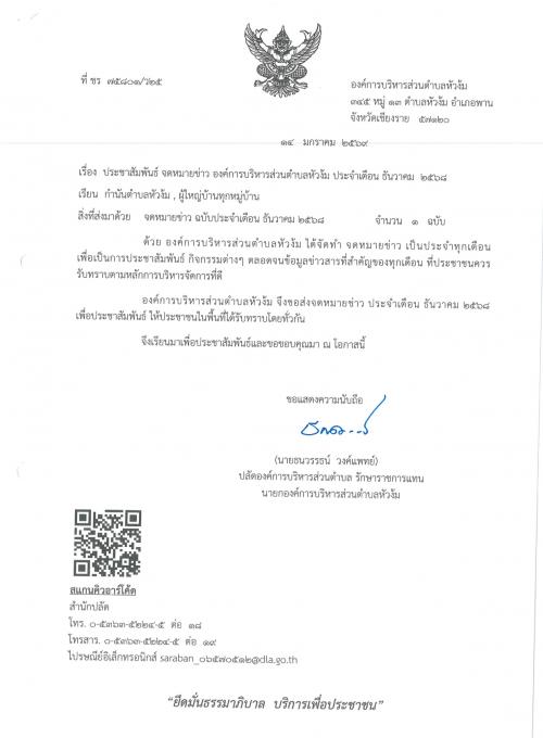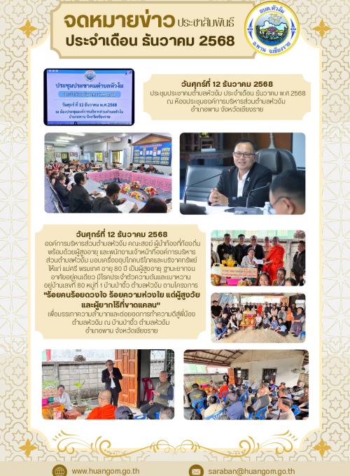 ประชาสัมพันธ์ จดหมายข่าว องค์การบริหารส่วนตำบลหัวง้ม ประจำเดือน ธันวาคม 2568