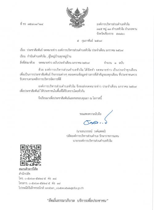 ประชาสัมพันธ์ จดหมายข่าว ประจำเดือน มกราคม 2569