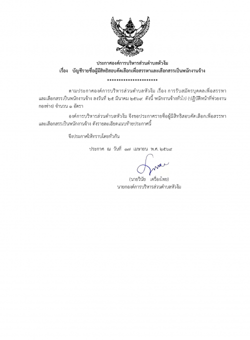 ประกาศองค์การบริหารส่วนตำบลหัวง้ม